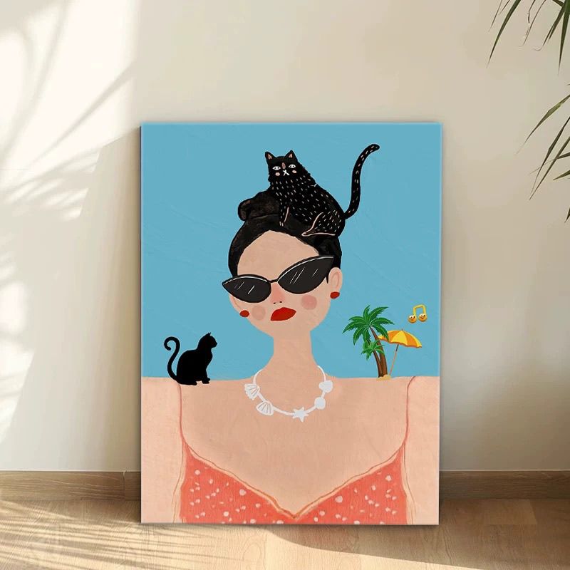 《海岛派对》小众艺术装饰画多巴胺抽象派酒吧墙壁画房间美女挂画