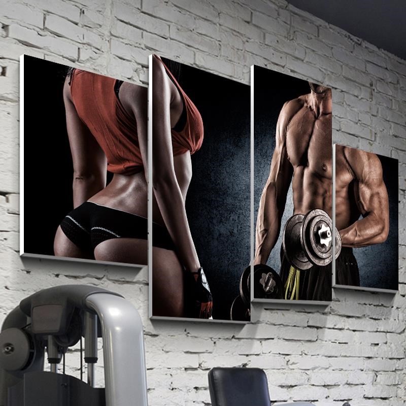 励志装饰画健身房运动肌肉男美女挂画健美强森壁画海报背景墙壁画