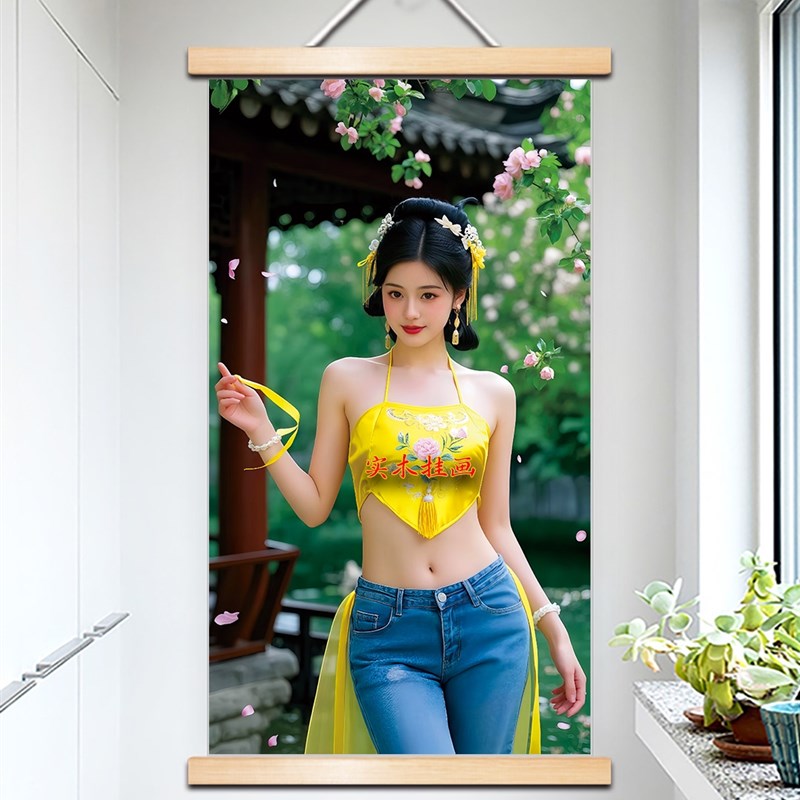 古风美女挂画AI人物装饰画玄关背景墙画卧室壁画酒店桑拿按摩店画