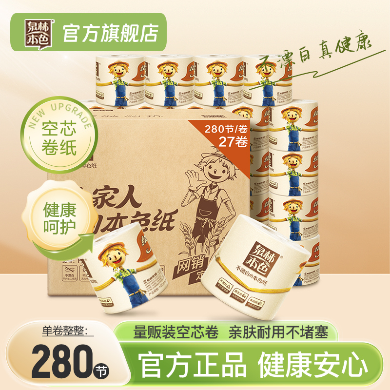 泉林本色卷筒纸3层280节27卷家用卫生纸不漂白厕纸卷纸巾整箱Z