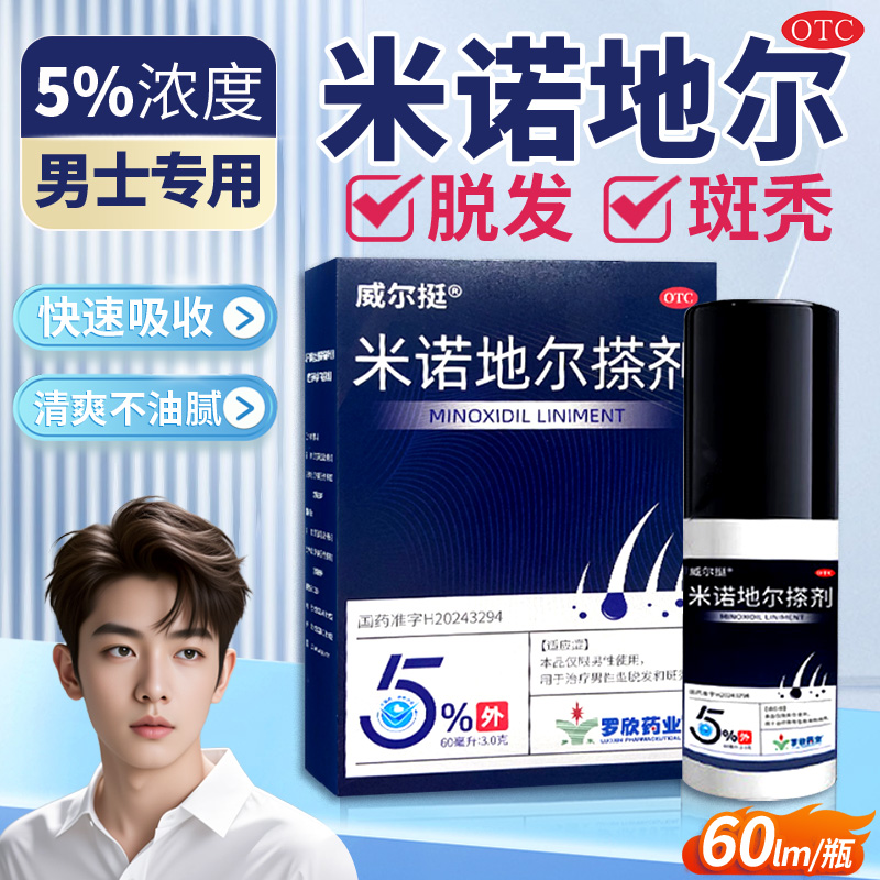 罗欣米诺地尔男士生发液搽剂5%60ml防脱发斑秃增密增发酊旗舰正品