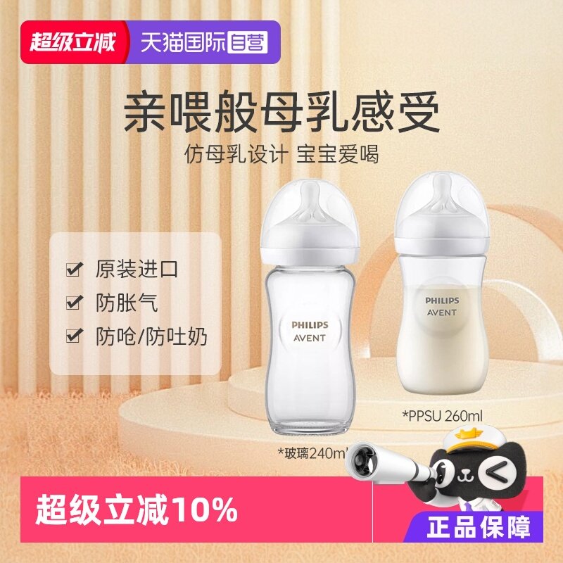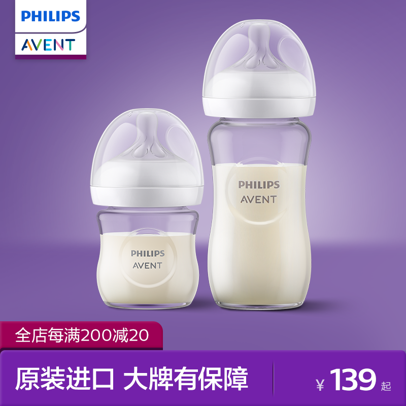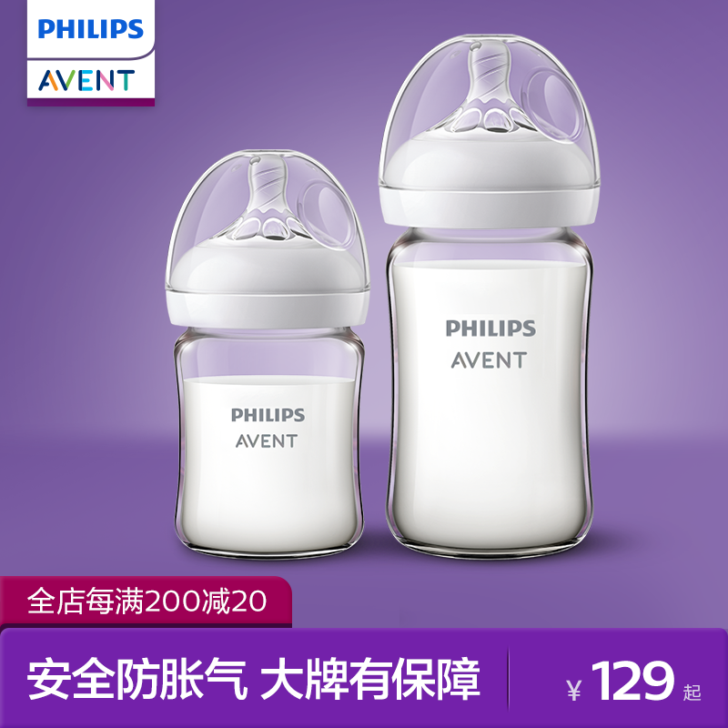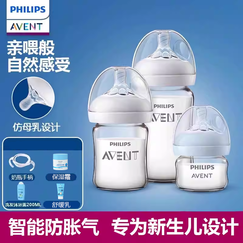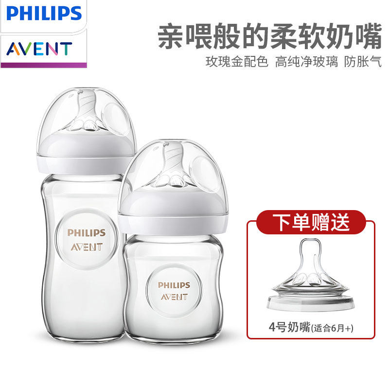 飞利浦新安怡奶瓶宽口径新生婴儿0到6个月宝宝母乳防胀气玻璃奶瓶