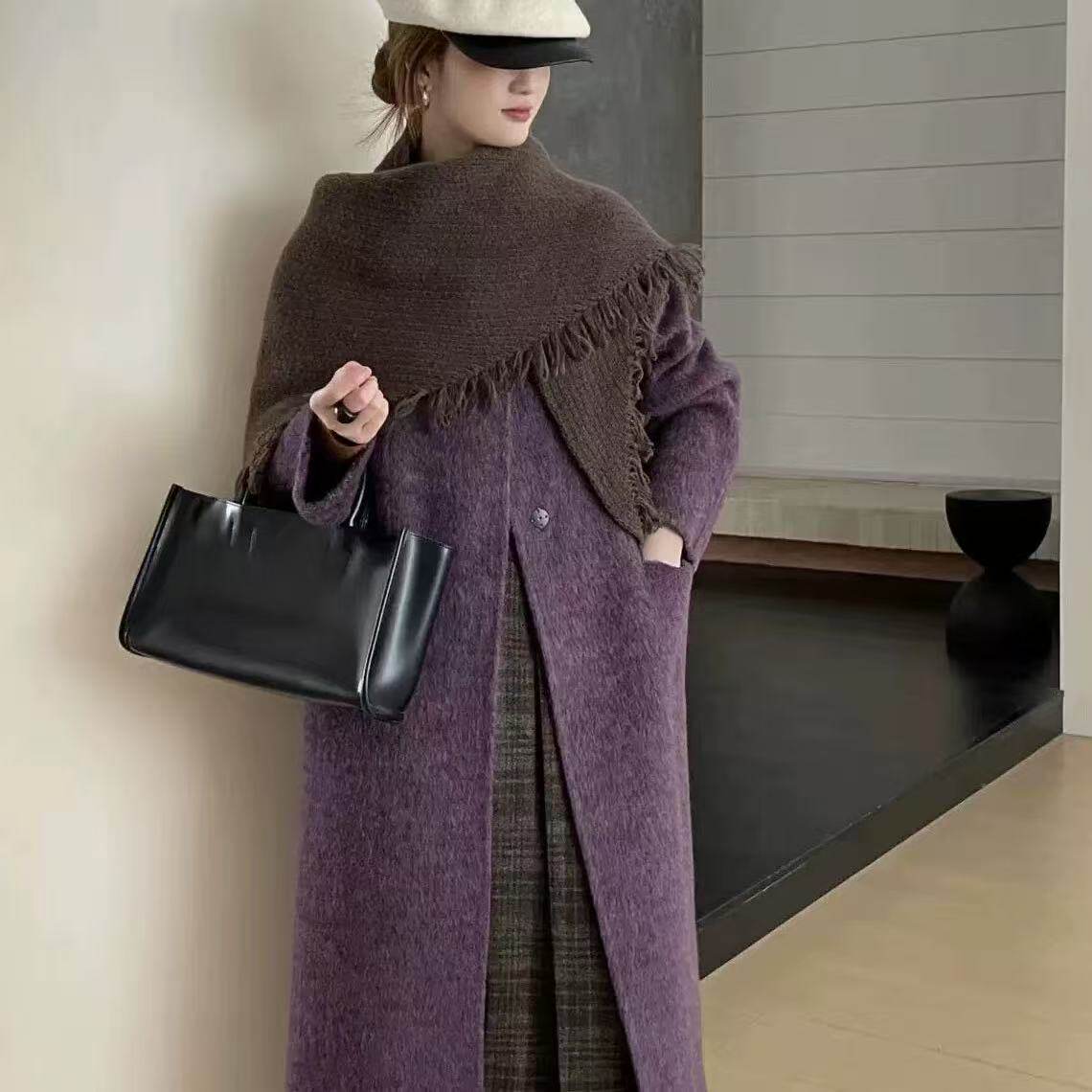 欧洲站披肩围巾苏丽羊驼绒双面羊绒毛呢大衣外套女中长款2025冬季