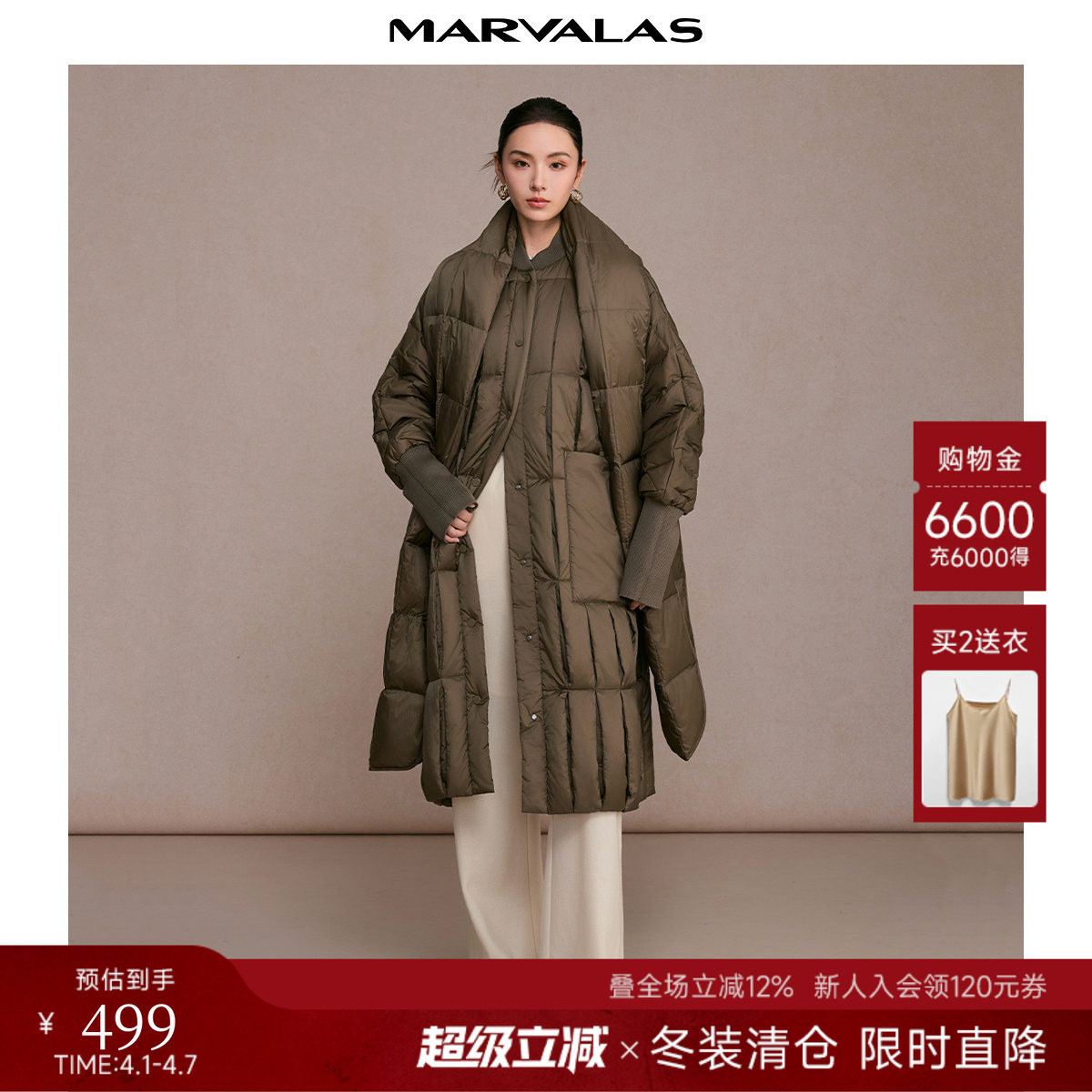 衣香丽影超轻泡芙羽绒服女中长款2025冬装新款90绒泡芙外套送围巾