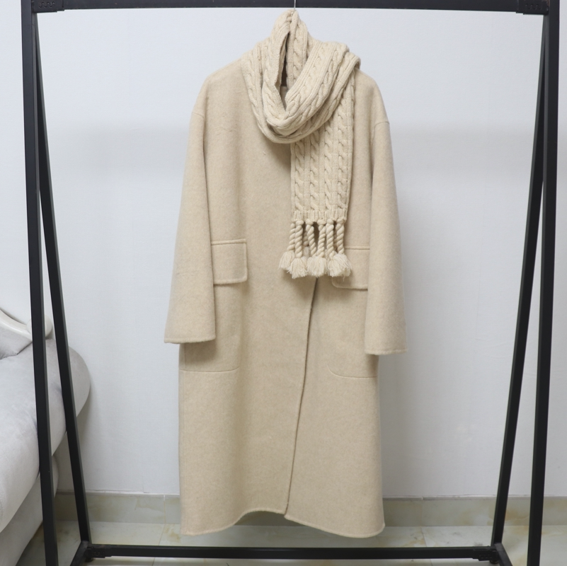 oo&vv莱赛尔双面羊绒大衣女2025秋冬中长款宽松羊毛呢配围脖外套