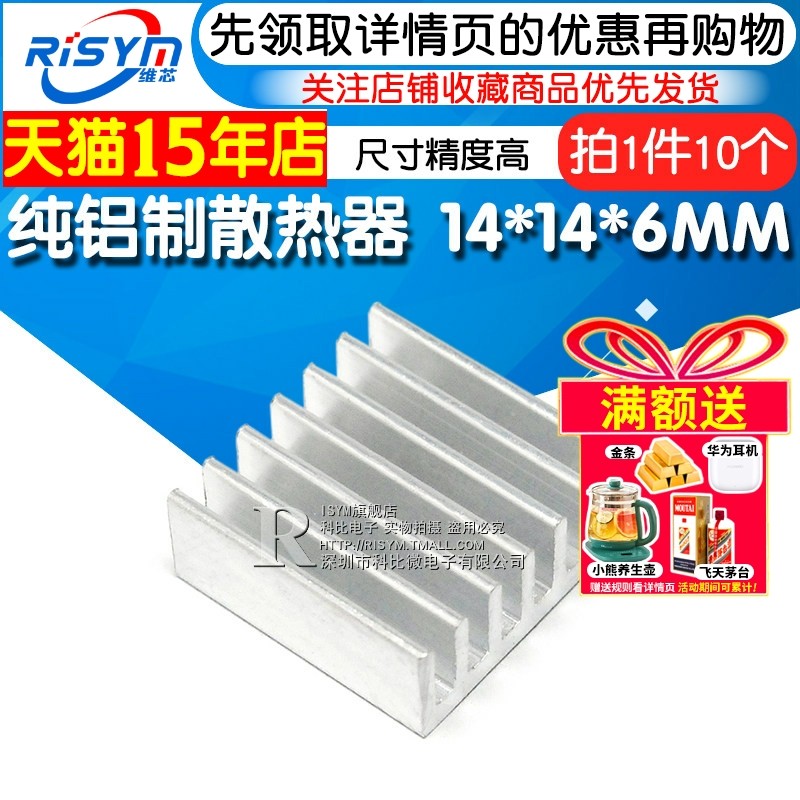 散热片 纯铝制散热器 笔记本散热器片 14*14*6MM (5个)