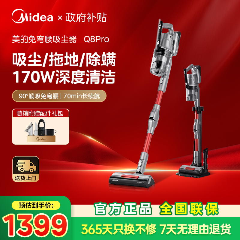 美的吸尘器家用强力无线大吸力猫毛手持大功率吸擦拖一体机Q8pro