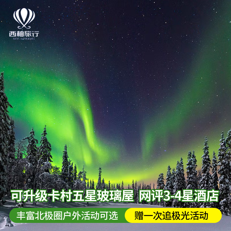 北欧极光户外旅游跟团挪威芬兰圣诞老人村玻璃屋4日3晚2人私家团