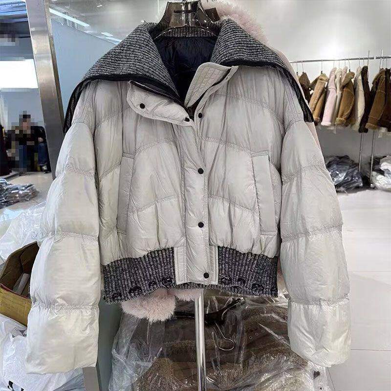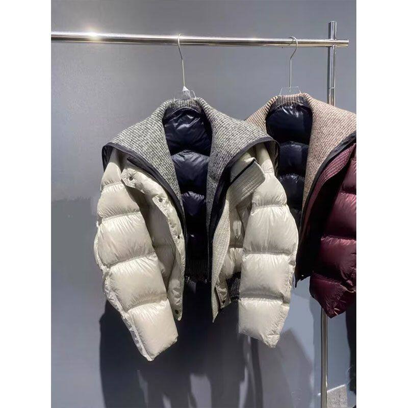 2025秋冬法式气质设计感小众韩国短款羽绒棉服女针织拼接保暖外套