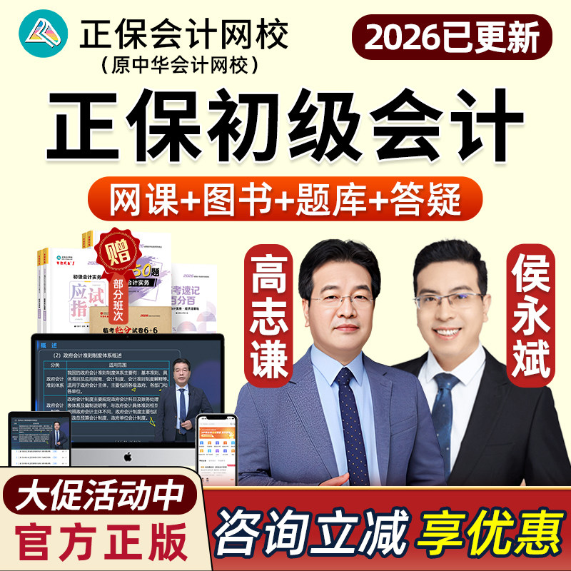 2026年正保初级会计职称考试网课视频中华会计网校实务高志谦经济法基础侯永斌AI豪华书课包官方教材课程课件题库习题历年真题2025