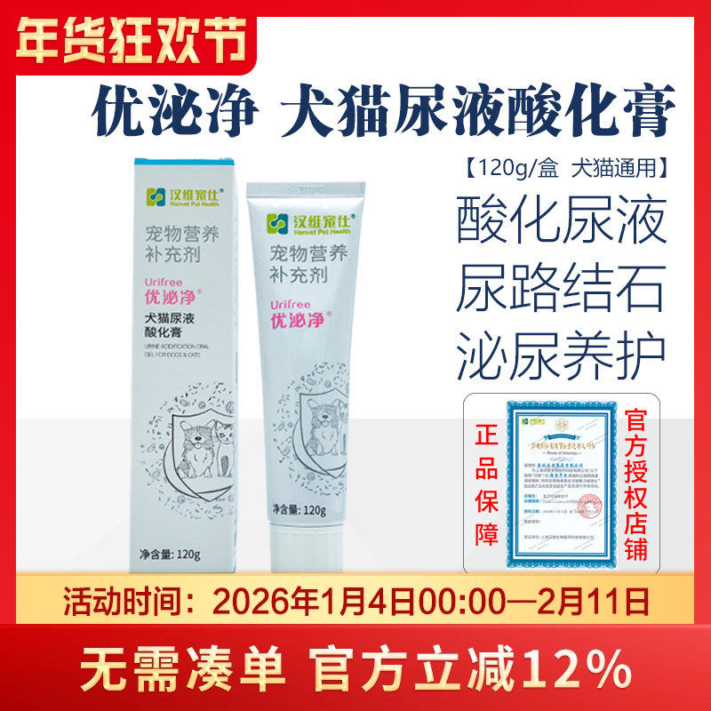 优泌净尿液酸化膏汉维宠仕宠物狗狗犬猫尿结石排石利尿泌尿营养膏