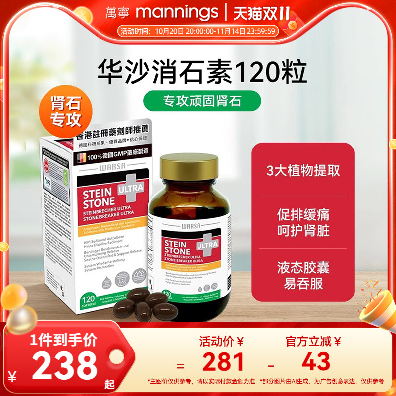 德国华硰WARSA强力消石素进口胆肾结石化石碎石排石专用药60粒装