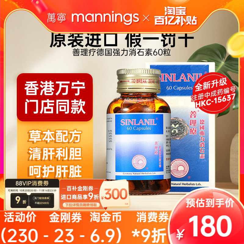德国善理疗强力消石素香港原装进口排石药肝胆肾结石排石胶囊60粒