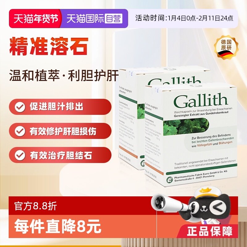 【自营】德国Gallith爱活胆通胶囊胆结石专用药胆管结石排石2盒