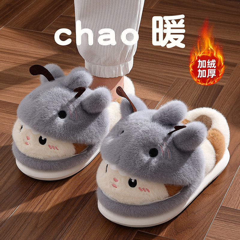 生气小狗棉拖鞋女包跟冬季情侣居家厚底防滑外穿保暖可爱毛绒棉鞋