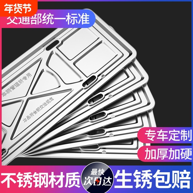 汽车牌架边框牌照框不锈钢通用托盘特斯拉宝马奥迪加厚蓝牌车牌套