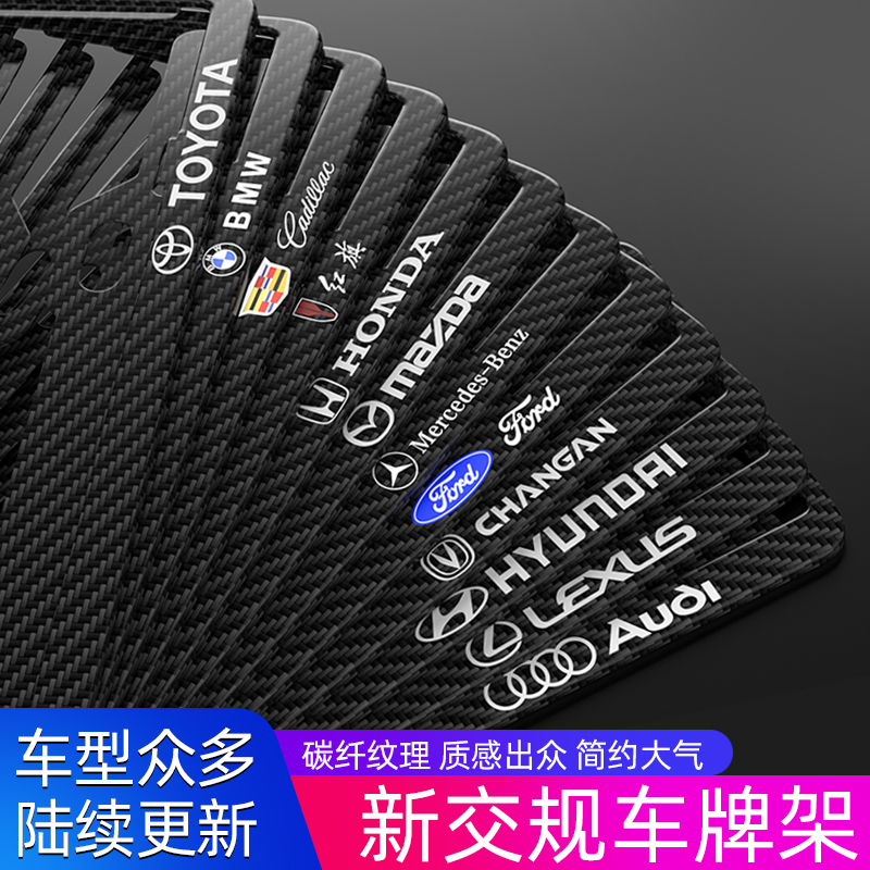 碳纤纹车牌架带车标车牌边框适用于宝马奔驰奥迪丰田新交规牌照框