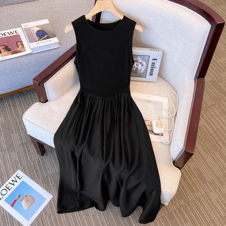 时尚女装捡漏~黑色圆领无袖背心打底连衣裙女修身大裙摆气质长裙