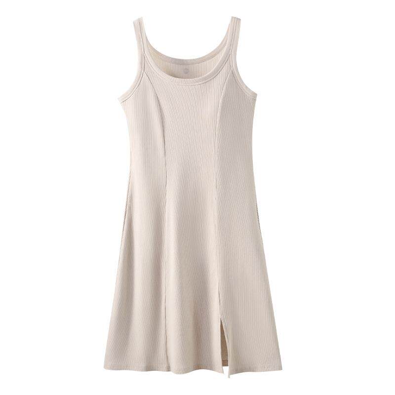 春夏新款韩版圆领修身中长款纯白背心打底连衣裙女装纯色简约休闲