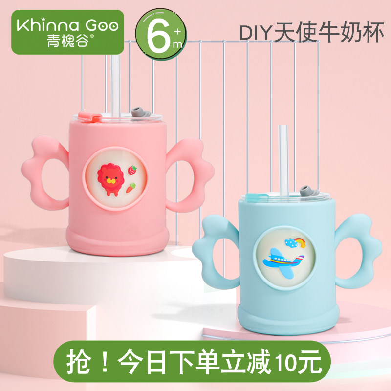 - 玻璃奶瓶带吸管手柄