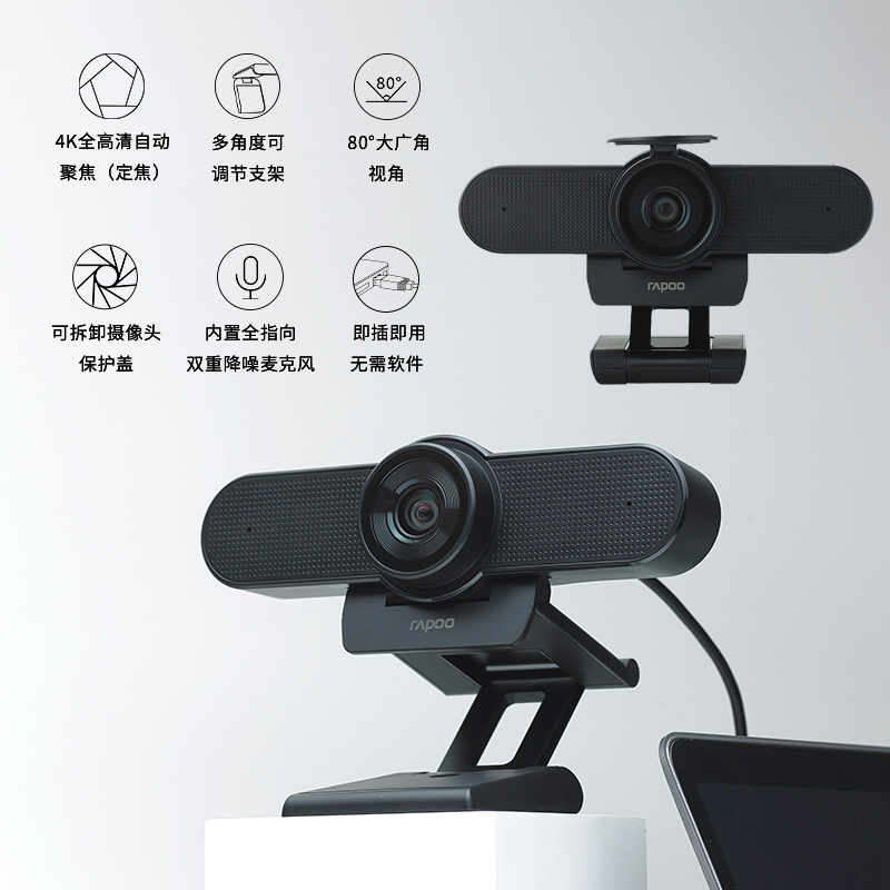 雷柏C280摄像头2K电脑台式直播网课教学美颜带麦克风视频会议USB