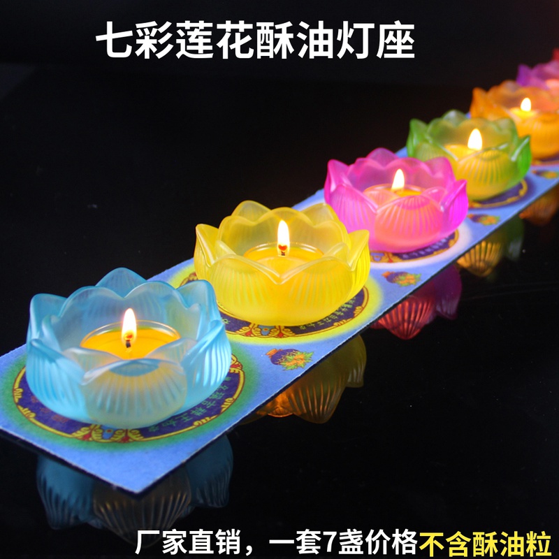 七彩水晶莲花蜡烛台供奉供佛灯酥油灯座家用供灯长明摆件佛贡用品