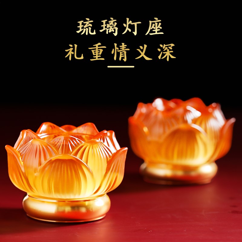 琉璃莲花烛台家用蜡烛供佛灯酥油灯灯座灯盏神台灯佛油灯佛具用品