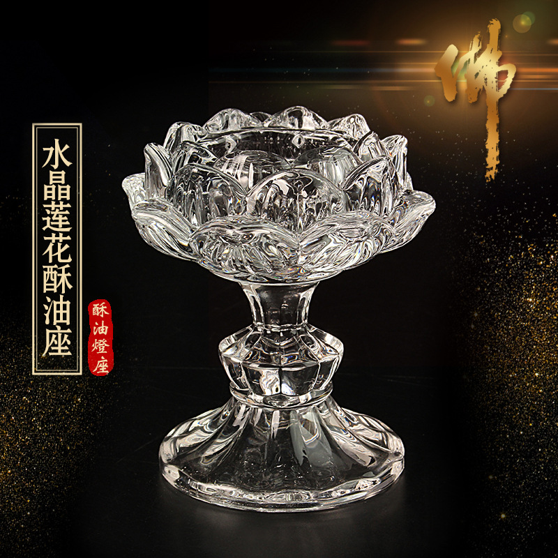 蜡烛烛台供佛灯酥油灯灯座家用水晶莲花蜡烛底座供灯灯盏玻璃琉璃