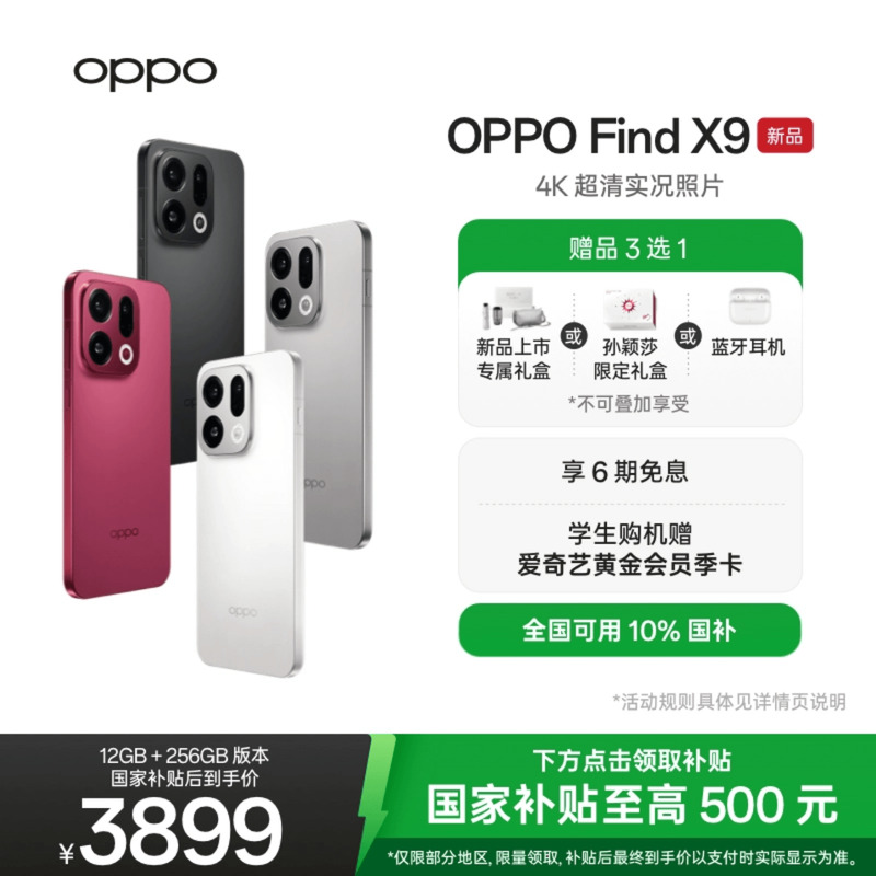 【自营 政府补贴】OPPO Find X9 旗舰手机 4K超清实况照片 7025mAh冰川电池 丹霞色彩还原镜头天玑9500旗舰芯