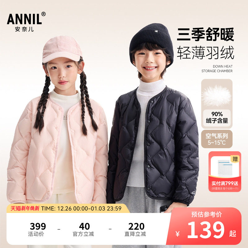 【校服神器】安奈儿童装男童女童短款羽绒服2025冬新款轻薄防风