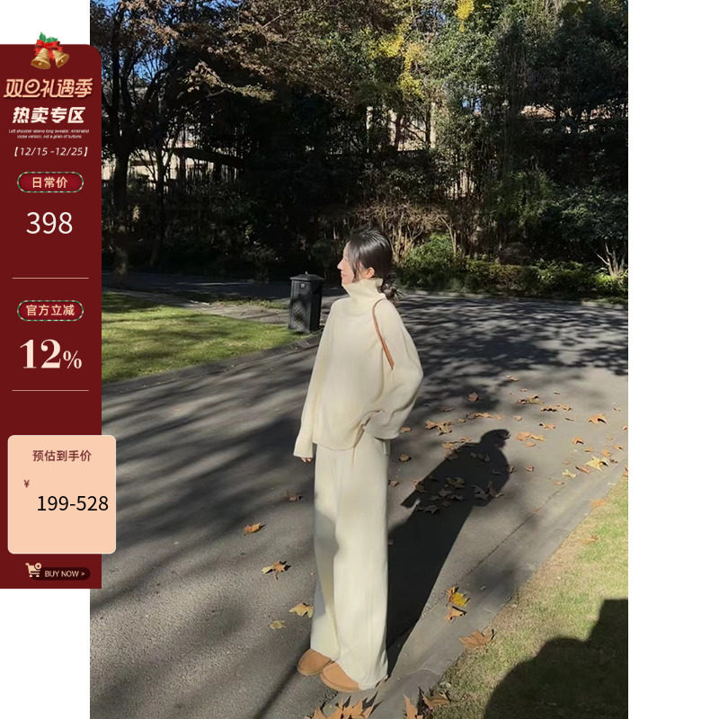 菲梦伊含羊毛针织套装女冬季加厚高领套头毛衣垂感阔腿裤子两件套