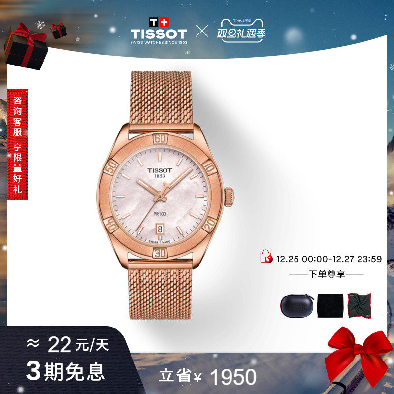 Tissot天梭PR100灵动刘亦菲同款小金表贝母盘女表手表