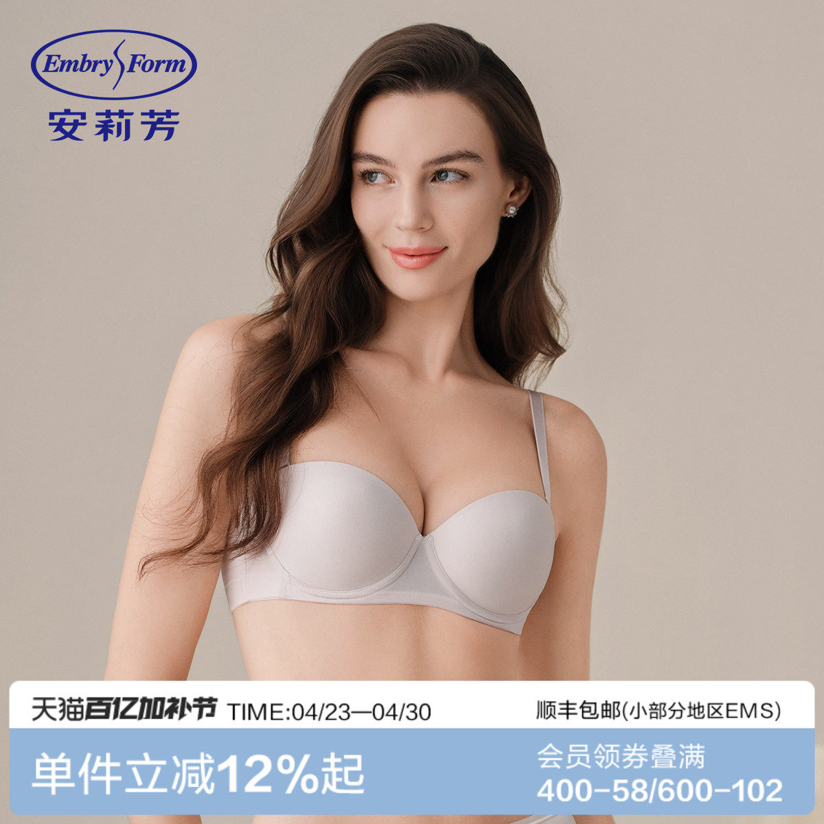 安莉芳纯色光面可拆无肩带半杯文胸女士大胸显小薄款内衣EBW0896