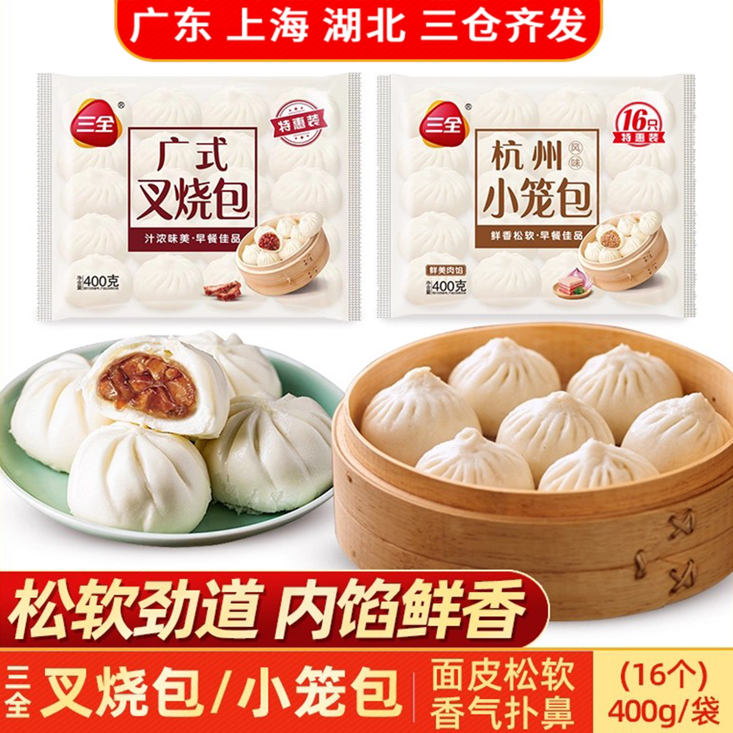 三全杭州风味小笼包广式叉烧包面点400g冷冻速食包子早餐半成品