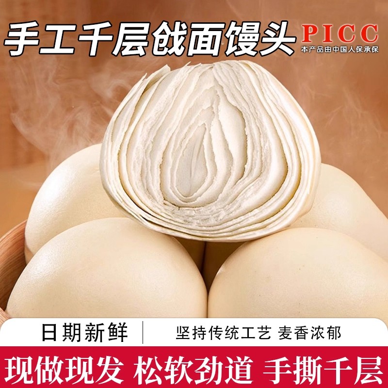 山东千层老面大馒头纯手工呛面饽饽戗面儿童营养早餐包子馒头馍馍