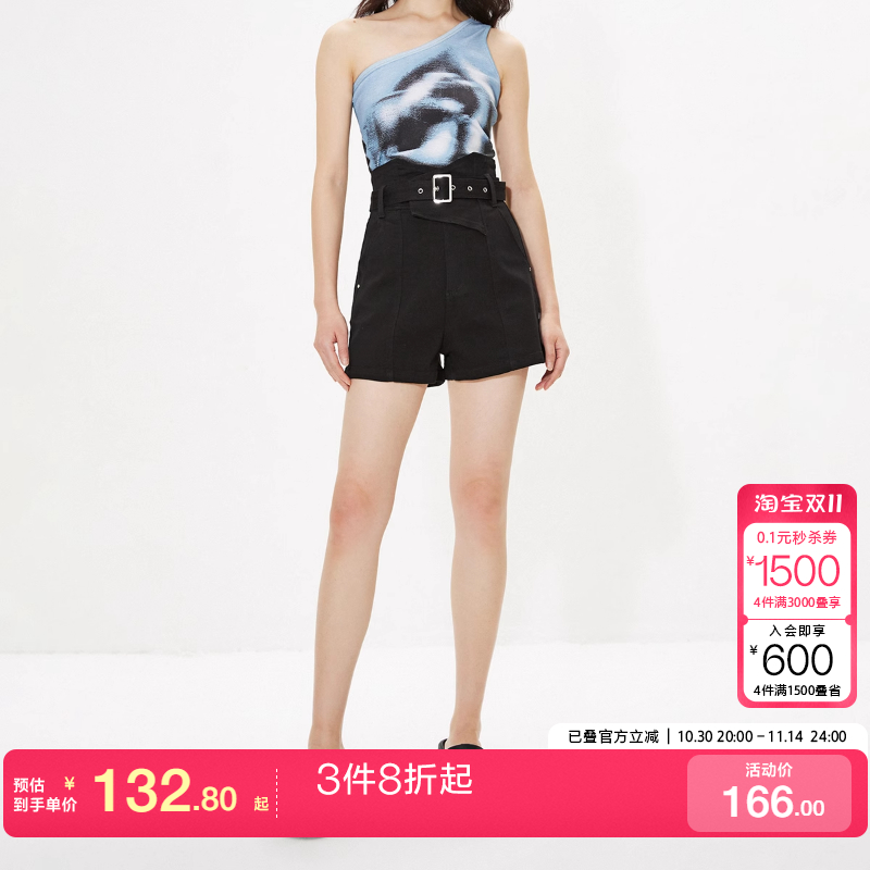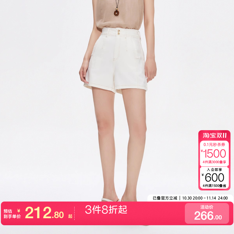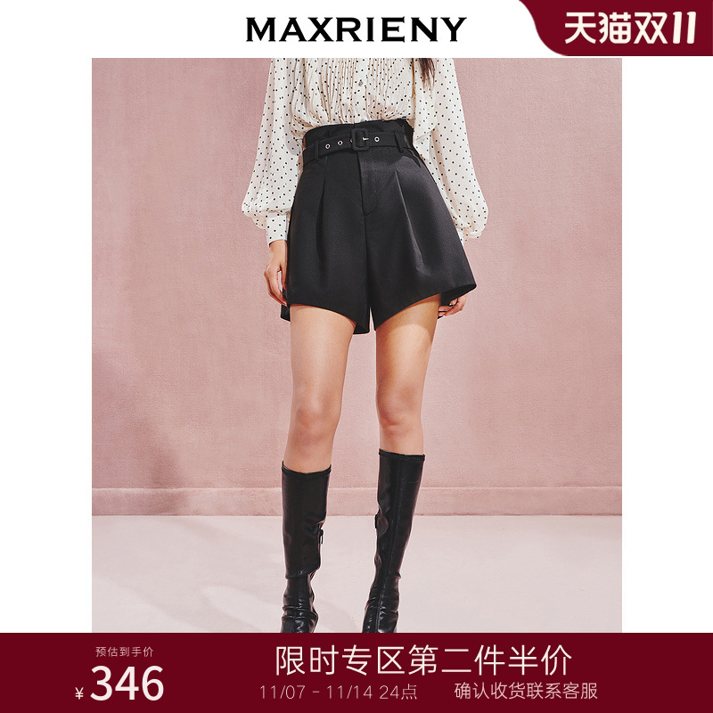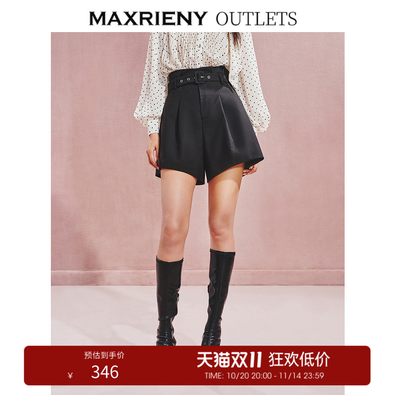 [第2件半价]【商场同款】MAXRIENY精致感本布腰带高腰A字短裤