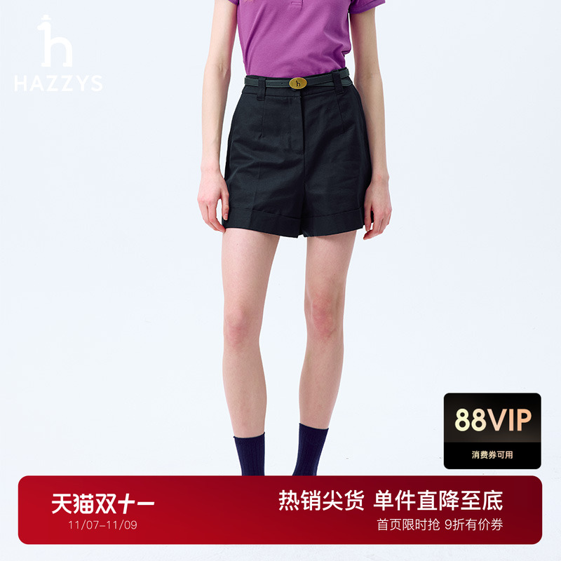 【商场同款】Hazzys哈吉斯高腰A字短裤女士夏季纯色运动休闲裤