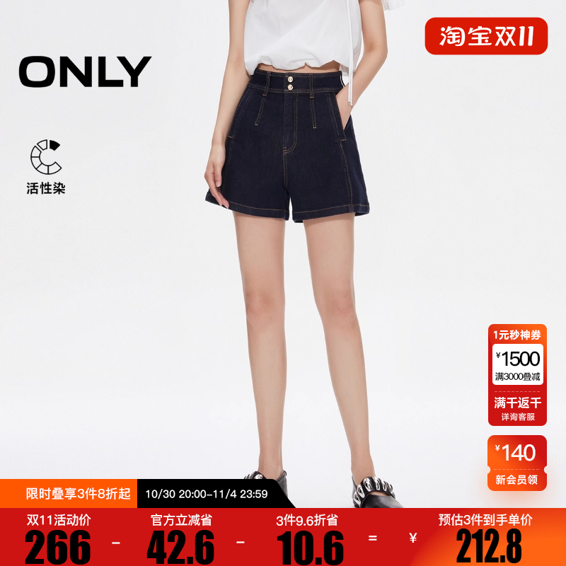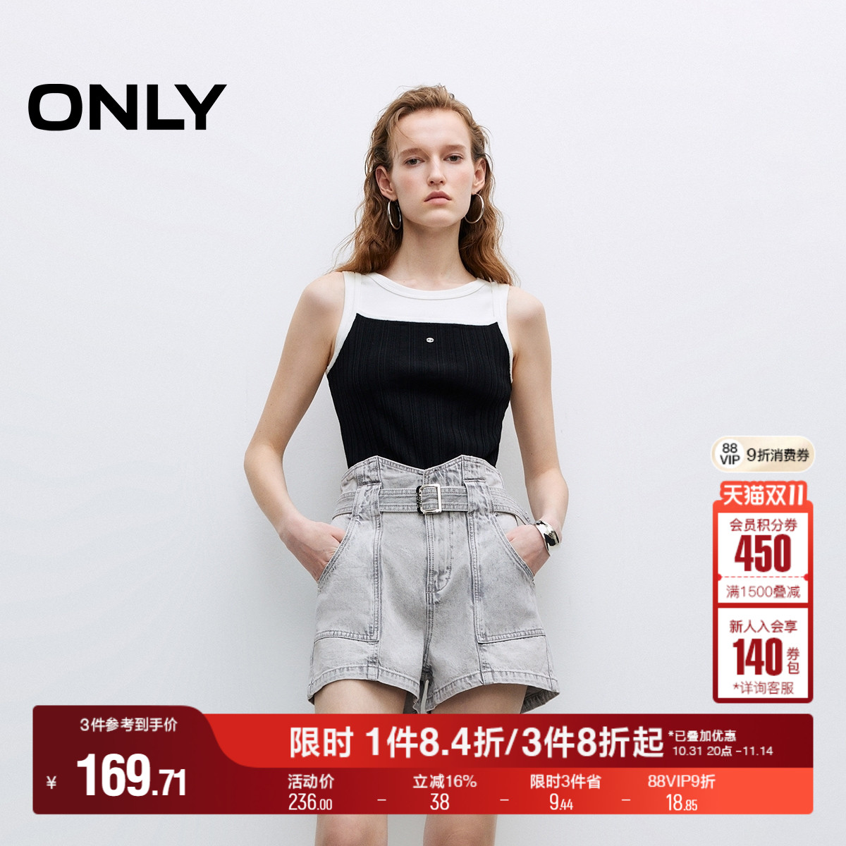 ONLY2025夏季新款质感面料可拆卸腰带显瘦高腰A字短裤牛仔裤女