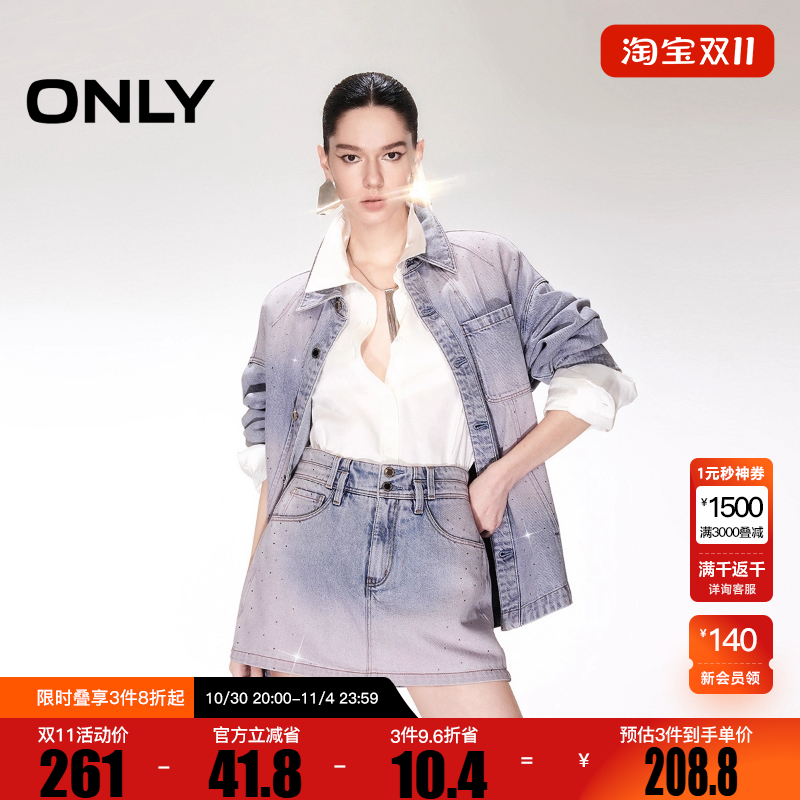 ONLY2025冬新款时尚烫钻高腰A字短裤裙裤牛仔裤女|125243019