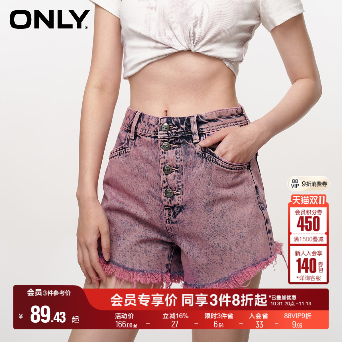ONLY夏季时尚设计感毛边高腰A字短裤牛仔裤女|124243012