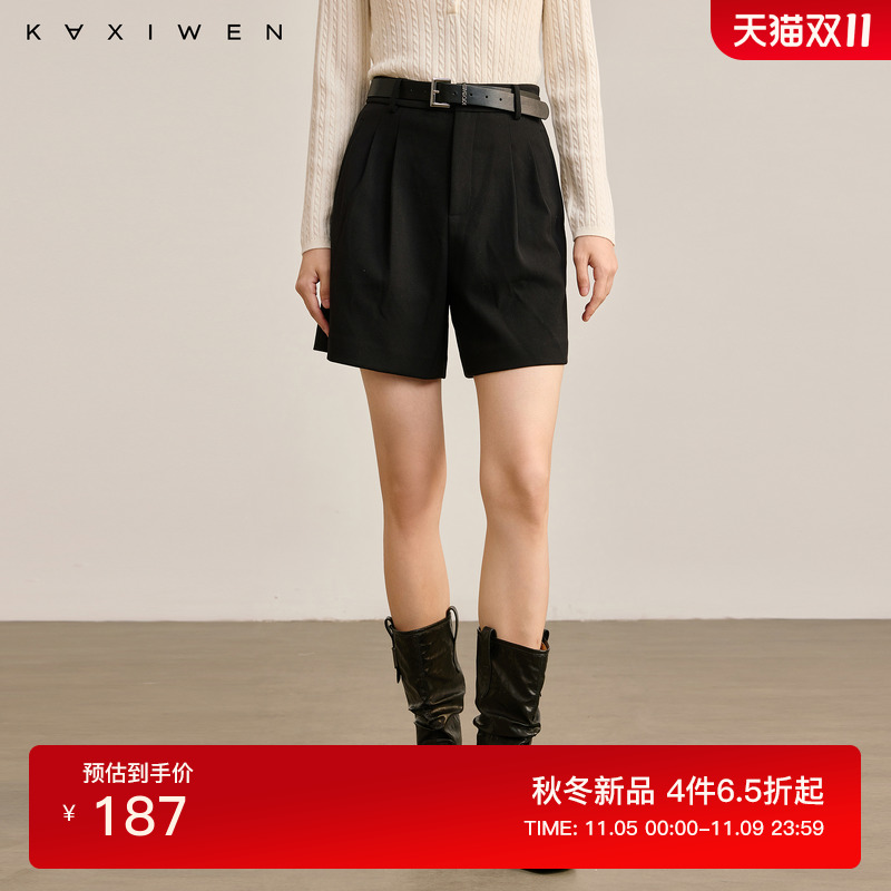 佧茜文高腰A字短裤2025冬季新款时尚休闲简约褶皱黑色直筒裤子女