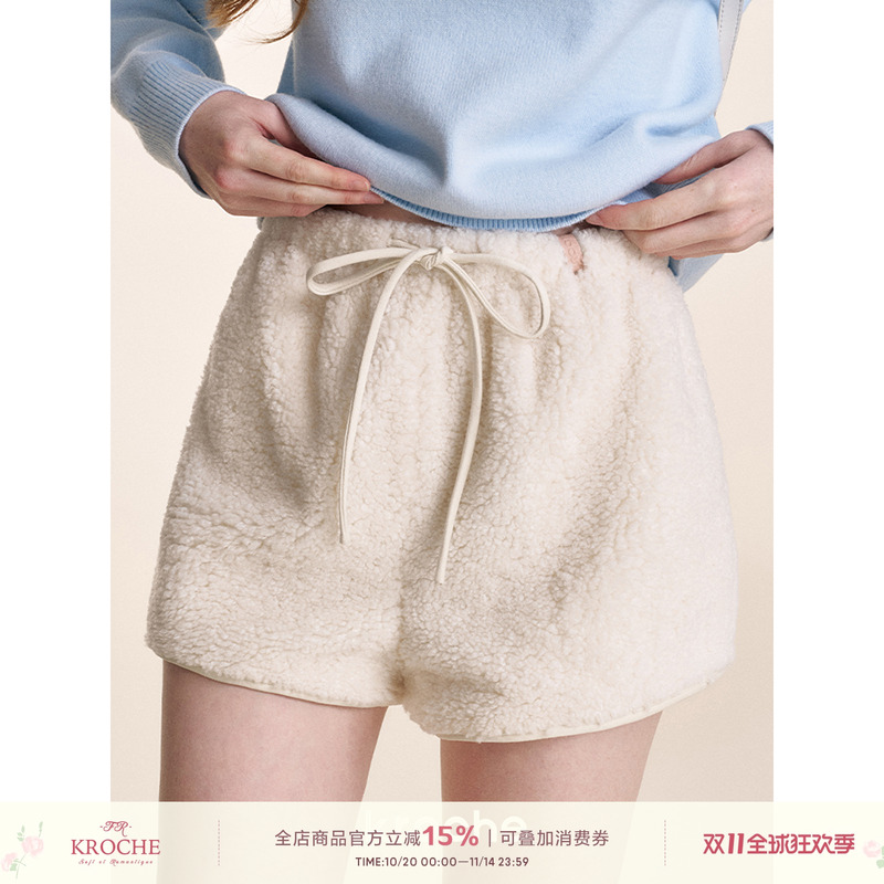 动感哥弟羊毛毛呢短裤女秋冬新款高腰A字短裤阔腿外穿配靴子裤子