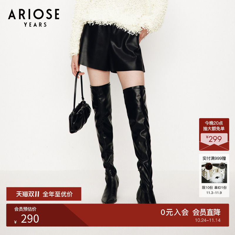 艾诺丝雅诗 简约直筒松紧腰皮裤女2024秋季高腰A字短裤30913042