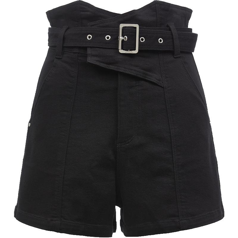DPLAY德帕拉春新黑色通勤风高腰A字短裤金属皮袢装饰西装裤