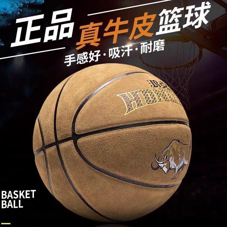 鸿克7号真牛皮篮球软皮耐磨翻毛纯牛皮专业成人手感室内外户蓝球