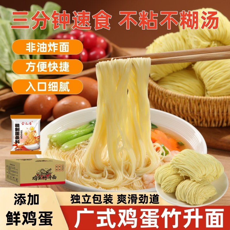 广东手工竹升面正宗面食港式云吞面细面条早餐非油炸鸡蛋面整箱装