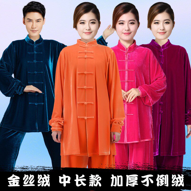 太极服金丝绒不倒绒练功服女加厚秋冬冬季男南韩绒中长款太极拳服