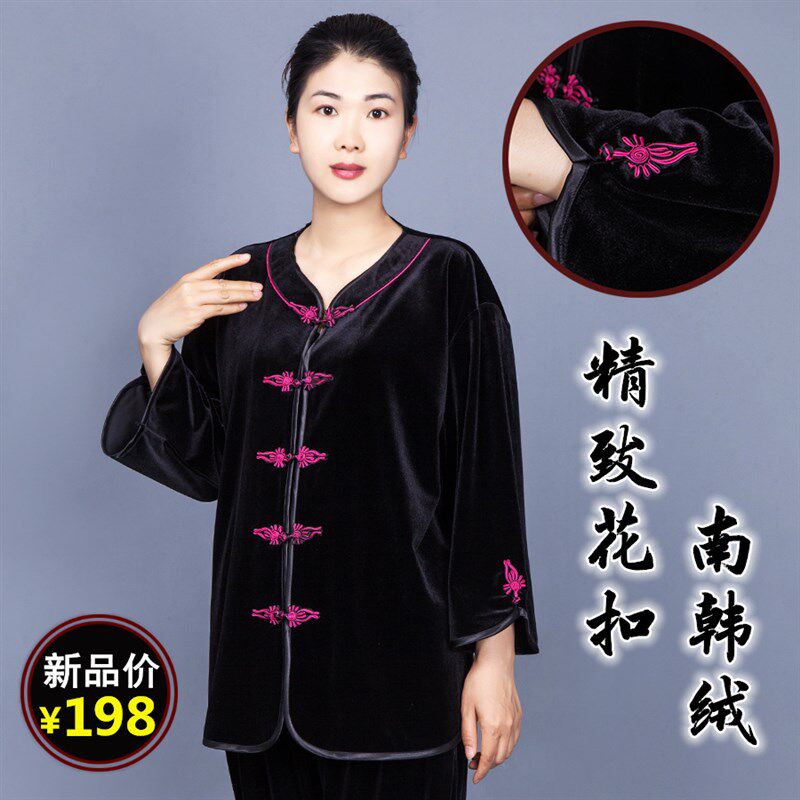冬季太极服金丝绒中年女加厚男秋冬中老年练功服中式武术服中国风