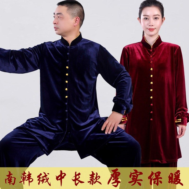 金丝绒太极服秋冬加厚中长款2025新款冬季太极拳练功服男女武术服