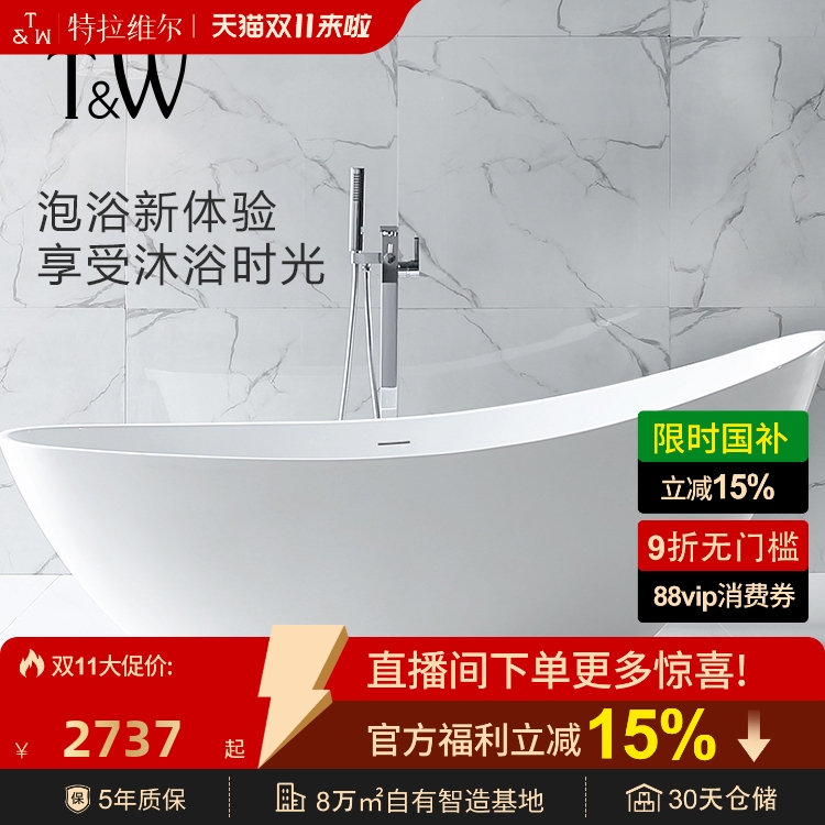 特拉维尔亚克力浴缸家用小户型独立式薄边鹅蛋形网红民宿成人浴盆